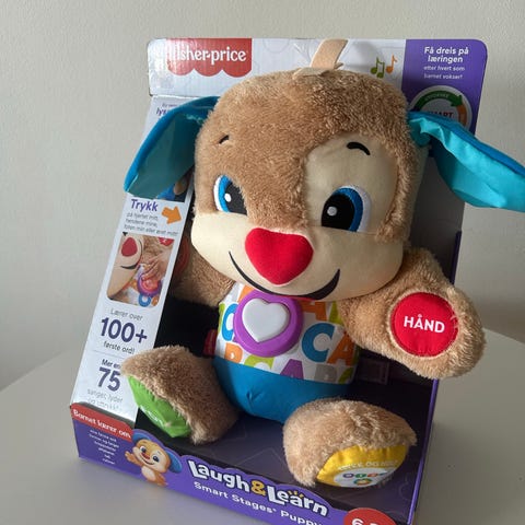 Laugh & Learn® Smart Stages™-valpen er myk, kosete, og han er klar til å sørge for at læringsgleden aldri tar slutt. Dette musikalske plysjleketøyet reagerer på babyens berøring med spennende sanger, lyder og fraser som introduserer mer enn 100 første ord, inkludert deler av kroppen, farger, former og mer! Og fordi hver baby utvikler seg i sitt eget tempo, kommer Puppy med Smart Stages™-teknologi, slik at du kan velge det læringsnivået som er best for barnet ditt. Det er en rekke sanger, lyder og fraser innenfor hvert av de tre spillenivåene. Og Puppys opplyste, flerfargede hjerte glimter til og med med til musikken!