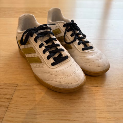 Adidas fotballsko for innendørs bruk. Skoene er svart med hvite striper og har lys, mønstret yttersåle som gir godt grep på innendørs underlag. Overdelen er i syntetisk materiale med snøring for justerbar passform. Egnet til futsal og annen innendørs fotballtrening og -spill.