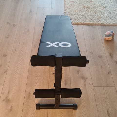 Adking treningsbenk i svart farge. Benken har polstret rygg- og sittepute, samt justerbar ryggstøtte for ulike øvelser og treningsposisjoner. Stabil stålkonstruksjon egnet til styrketrening med manualer og kroppsvektøvelser hjemme. Som ny brukt få ganger.