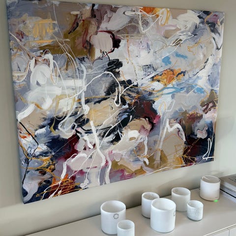 Stemningsfull akvarell som forestiller bygninger langs vann/kai. Mykt fargebruk og rolig uttrykk som passer godt i stue, gang eller kontor.