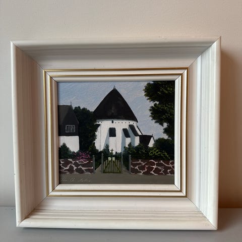 Bildet er signert og datert 1990 (nede til høyre). Leveres ferdig innrammet med passepartout og enkel gullfarget ramme. Klar til oppheng.