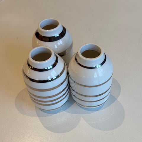 Vaser 9 cm, 3 stk. med gull striper.