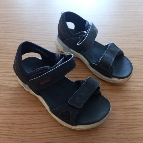 Pent brukt, ikke godt vasket. Gode sko med myk beskyttelse bak reimene.