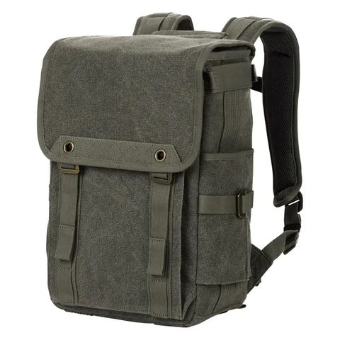 Think Tank Retrospective 10 V2.0 skulderveske i grå/militær tekstil. Vesken har justerbar skulderrem med skulderpolstring og klaff som dekker hovedrommet. Innvendig er det polstret hovedrom med flere flyttbare skillevegger for organisering av utstyr. I tillegg har vesken flere utvendige og innvendige lommer for tilbehør og småting. Passer til bæring og organisering av kamera- og fotoutstyr eller annet utstyr som trenger beskyttelse og inndeling.
