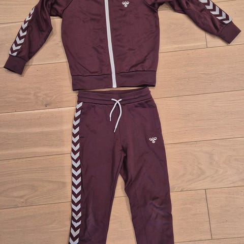 Hummel joggedress for barn i størrelse 146. Sett med jakke og bukse i blå farge med Hummels karakteristiske piler langs ermene og buksebenene. Jakken har glidelås foran og ribbekant nederst. Buksen har strikk og snøring i livet. Egnet til hverdagsbruk og ulike fritidsaktiviteter.