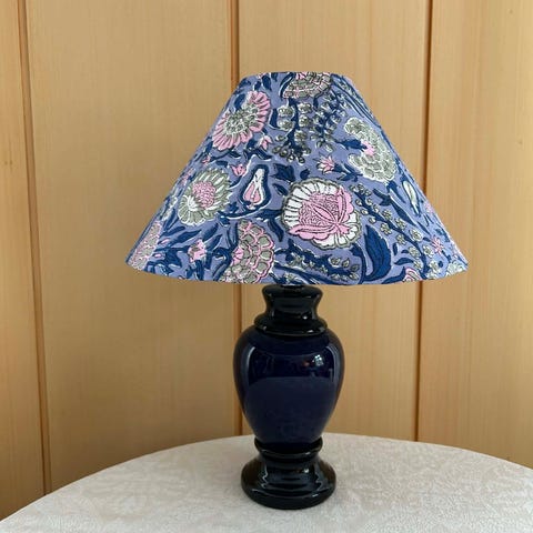 Liten messinglampe med håndlaget skjerm i stoff fra Studio Bazar