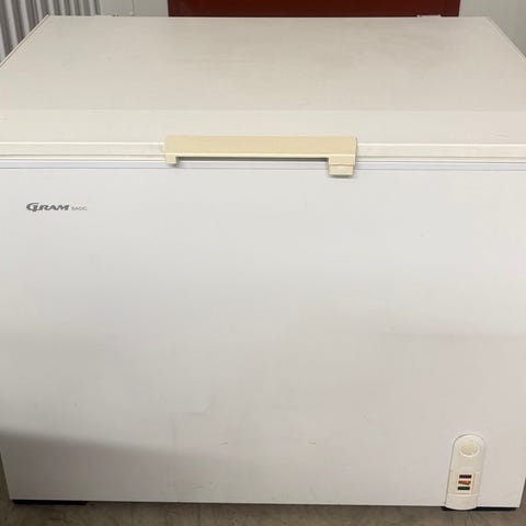 Gram fryseboks i hvit utførelse. Fryseboksen har toppåpning og er utstyrt med trådkurver for organisering av innholdet. Egnet for oppbevaring av frossen mat i bod, garasje eller andre rom med plass til en frittstående fryseboks. Strømtilkobling via vanlig stikkontakt. Nærmere tekniske spesifikasjoner som volum, mål og energiklasse er ikke oppgitt.