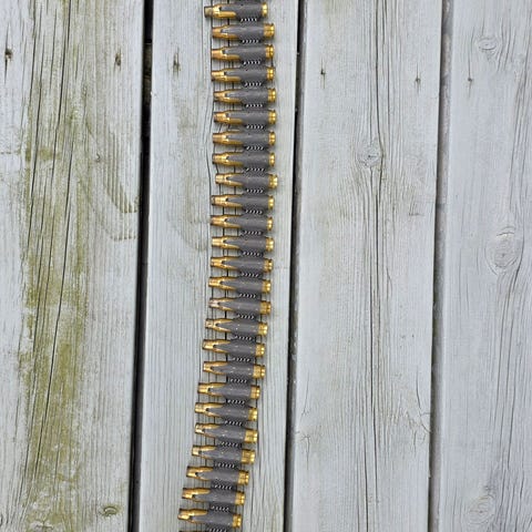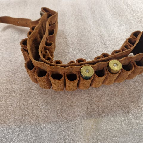 Patronbelte for hagle med elastiske patronholdere. Beltet er i grønn farge med kamuflasjemønster på holderne. Justerbar lengde med plastspenne. Egnet for oppbevaring og rask tilgang til haglepatroner under jakt eller skyting. Antall patronplasser som vist på bildene.