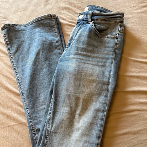 ONLY jeans for dame i størrelse S med livvidde W28. Lengde 30. Buksen er i blå denim av bomull. Klassisk femlommersmodell med beltehemper og knapp- og glidelåslukking foran. Baklommer med klaff og knapp. Passer til hverdagsbruk og kan kombineres med ulike topper og sko for et enkelt og praktisk antrekk.