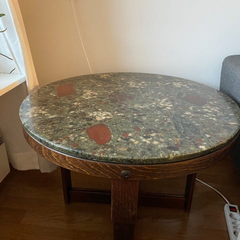 Farge grønn. Topplate er av tre ( ca 2 cm) .