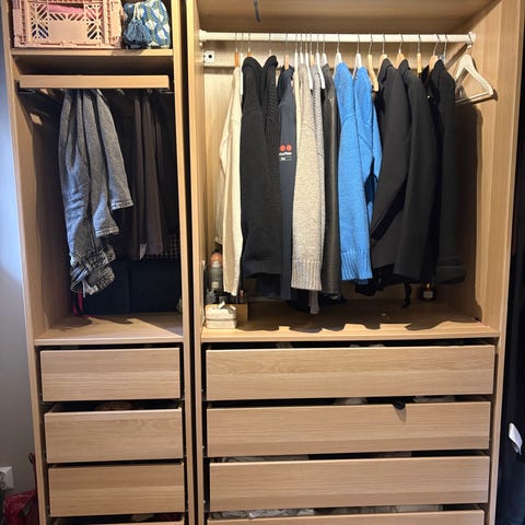 Fint å alsidig skap med hyller, hengere og skuffer.