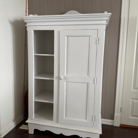 Dette skapet er trolig eik, men malt av tidligere eier. Stor skuff nederst.