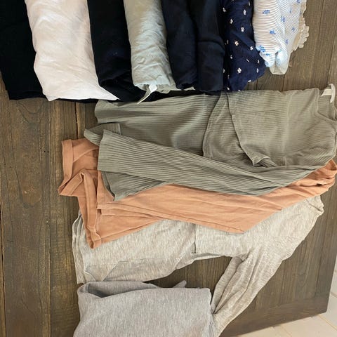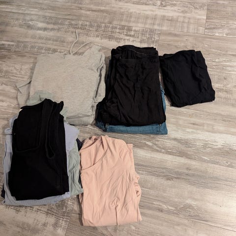 Anna Field mammaklær i størrelse S for dame. Plaggene er laget i bomull og består av ulike overdeler og en bukse/shorts, egnet for graviditet og amming. Flere av toppene har åpning eller lagvis front som gjør det praktisk ved amming. Klærne har ulike farger og mønstre, inkludert ensfargede og stripete varianter, og passer til hverdagsbruk. Bomullsmaterialet gir et mykt og behagelig plagg til bruk gjennom svangerskap og ammeperiode.