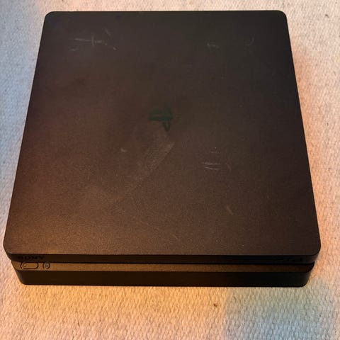 Sony Playstation 4 slim-modell med 500 GB lagring selges. Strømkabel følger med (som vist på bilde). Konsollen er godt behandlet og har det siste året kun stått ubrukt. Fremstår i god stand.