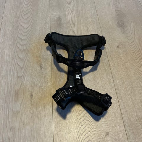 Hurtta hundesele i størrelse 60–70 cm. Selen er svart med kontrastsømmer og har polstret bryst- og ryggparti for økt komfort. Justerbare stropper gir mulighet for tilpasning rundt brystkassen. Selen har plastspenner for lukking og metallring for feste av bånd. Egnet for hunder som passer inn i målene 60–70 cm rundt brystet.