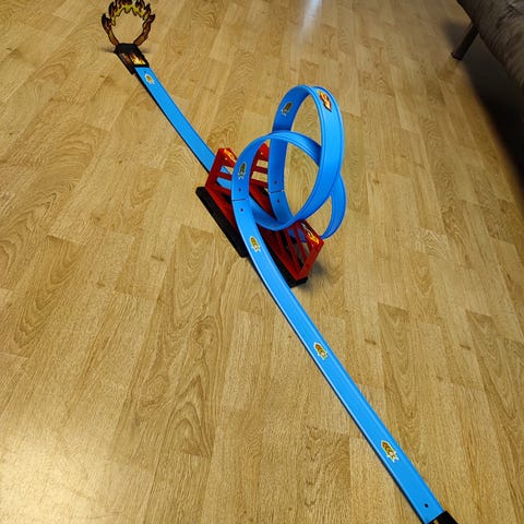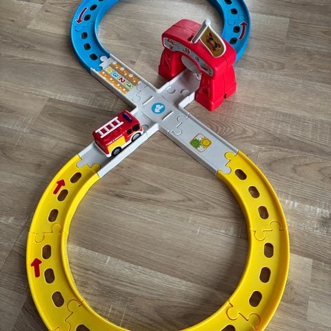 En drage bilbane med én loop. Bare åpnet og testet, men guttungen min er ennå litt for liten til å more seg med den. (Klistremerkene falt derimot i smak og er dessverre borte nå.)