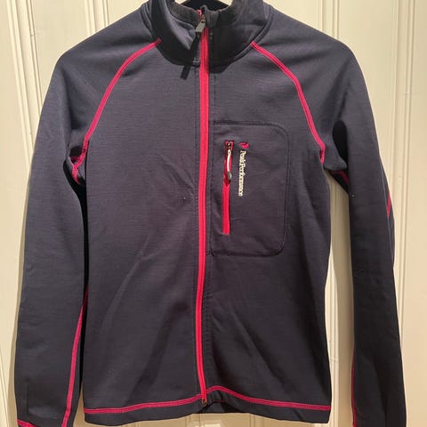 Peak Performance jakke for dame i størrelse S. Jakken er grå og laget i polyester. Den har hette, hel glidelås i front og to lommer med glidelås. Passer som lett ytterjakke eller mellomlag i hverdagen og til fritidsbruk.