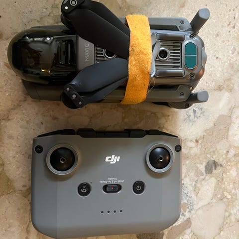Selges da den ikke blir brukt mer. Følger med 3 batteri, orginal eske, 230v lader og 12v. oppbevaringsbag og ekstra propeller.