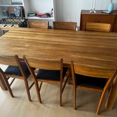 Vintage heltre rundt bord matbord furubord kjøkkenbord stort bord lite bord lyst tre tidløst klassisk 1970 1980