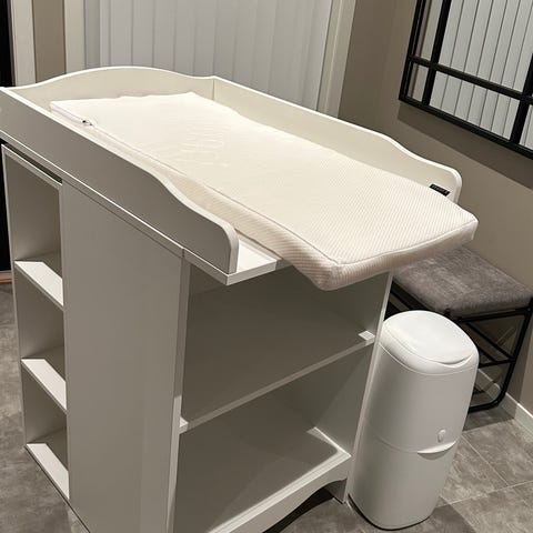Møbelet er egnet til stell og bading av spedbarn og små barn, og gir kombinert lagringsplass og stelleflate i ett møbel.