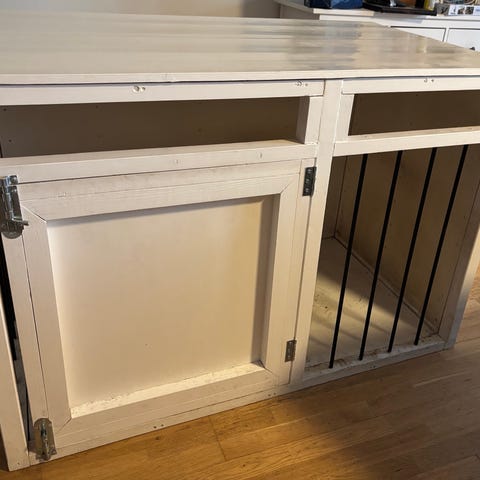 Stort og fint bur for større hunder. God plass til å legge inn teppe eller en madrass. Låsbart.