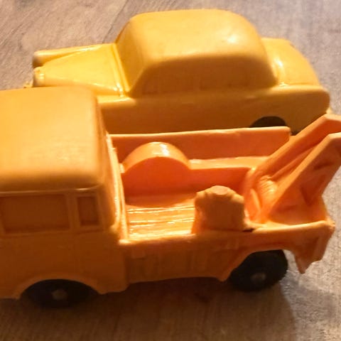Løftearmen kan heves og senkes, og kurven kan dreies ut fra bilen. Kurven mangler litt av rekkverket, ellers ser bilen ut og være i god stand med tanke på alder. Egnet som lekebil eller som samleobjekt for modellbiler.