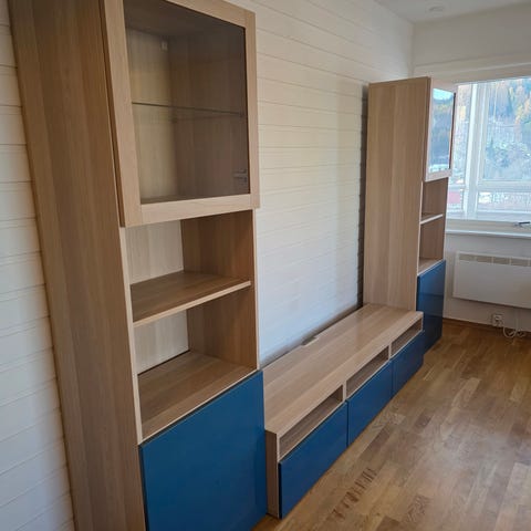 TV-benk med vitrineskap – svært pen fargekombinasjon – nesten ny