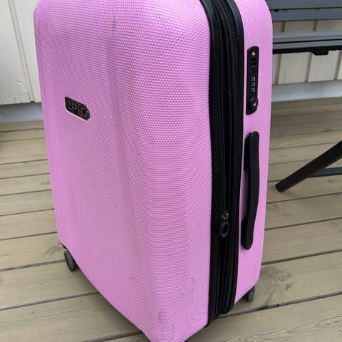 Epic koffert i hard plast. Kofferten har fire hjul, teleskophåndtak og bærehåndtak på siden. Den er 65 cm høy, 45 bred og 27 dyp.Innvendig er den utstyrt med stropper for å holde innholdet på plass, samt skillevegg med glidelåslommer og nettinglomme for organisering av klær og mindre gjenstander. Passer til ulike typer reiser der det er behov for en robust koffert med hardt skall.Selges kr 650. Ring eller send sms til 93248540