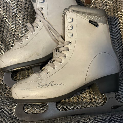 Safire Marina II W skøyter i størrelse EU 36. Modellen er hvit med snøring og klassisk skøytestål. Overdelen er i syntetisk materiale med polstret innside for. Brukt to ganger,