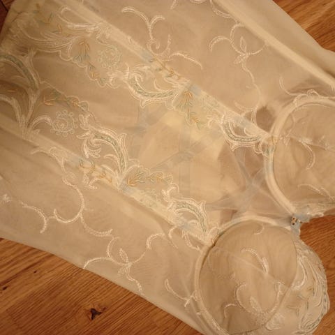 Selger en ubrukt «silke» pysjamas av polyester. Passer perfekt for bryllupsmorgen. Følger med topp, bukse, og morgenkåpe med bånd til å knyte rundt livet. Kun prøvd på. Buksen er litt kort på leggen.