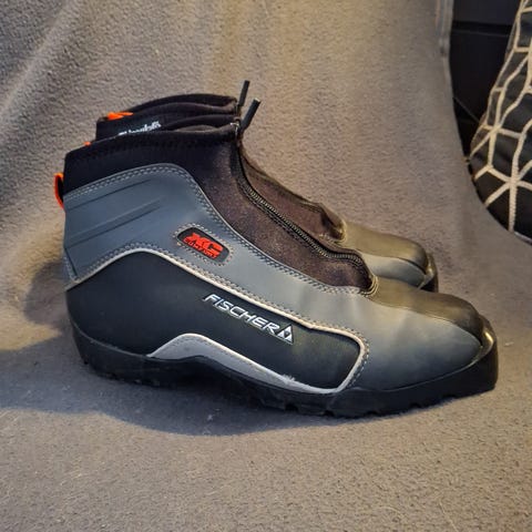 Fischer XC Cruiser langrennsko str 39 (tilsvarer 38). Skoene har overtrekk med glidelås foran for å beskytte mot snø og fukt. Hælen har forsterkning og stropp for enklere av- og påtaking. Egnet til klassisk langrenn for turbruk.