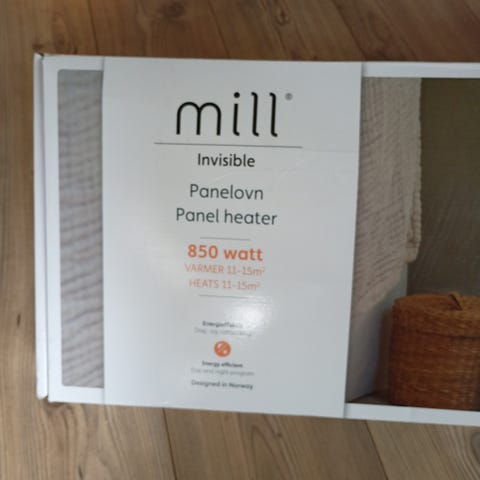 Mill Invisible Smart WiFi 1050W panelovn i hvit farge. Elektrisk panelovn med effekt på 1050 watt og innebygd termostat som kan styres via Mill-appen og WiFi. Godkjent for bruk på våtrom (IP24). Leveres med veggbrakett og skruer for montering, samt jordet tilkobling. Ovnen har overopphetingsvern og barnesikring. Kabellengde er 130 cm. Egnet som fastmontert oppvarmingskilde i rom som stue, soverom eller bad, der det er behov for elektrisk panelovn med appstyring. Brukt i 2 uker, leveres i originalemballasje.