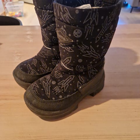 Penr brukte Kuoma vintersko for barn i størrelse 28 selges. Skoene har blått mønster med mørke detaljer. Egner seg til bruk i kaldt vær. Skoen er vannavisende og har en myk og sklihemmende yttersåle som sørger for komfort, demping og godt grep. Skoen er vaskbar i maskinen på 30 grader og skal lufttørkes etter vasking.