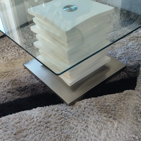 Stilrent og moderne kvadratisk glassbord/sofabord med solid understell i metall/krom.