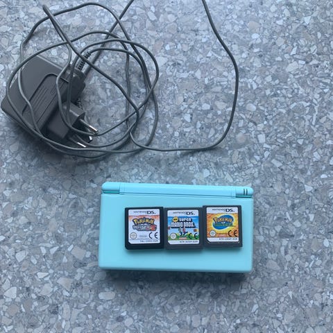 Strømadapter følger med. Det samme gjør spillene «Super Mario 3D Land» og «FIFA 13»