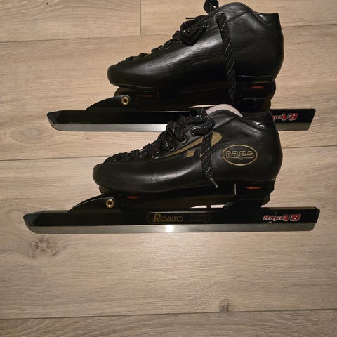 Pent brukte Viking Gold klappskøyter. Stål, av typen Viking Nagano sprint nikkel tilsalgs.