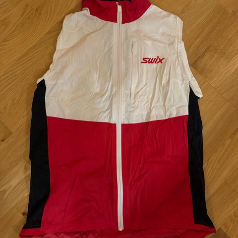 Swix vest egnet som turvest eller løpevest. Vesten har frontpanel i quiltet stoff i blå farge og elastiske, svarte side- og bakpaneler for bedre bevegelighet. Hel glidelås i front og glidelåslommer i sidene. Høy krage gir ekstra beskyttelse rundt halsen. Passer til bruk ved trening og friluftsaktiviteter i kjøligere vær. Kjønn ikke spesifisert.
