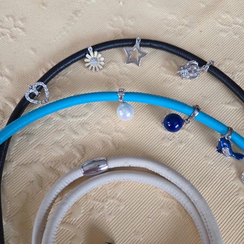 Følger med 9 ulike charms. Det følger med et verktøy for å bytte de.