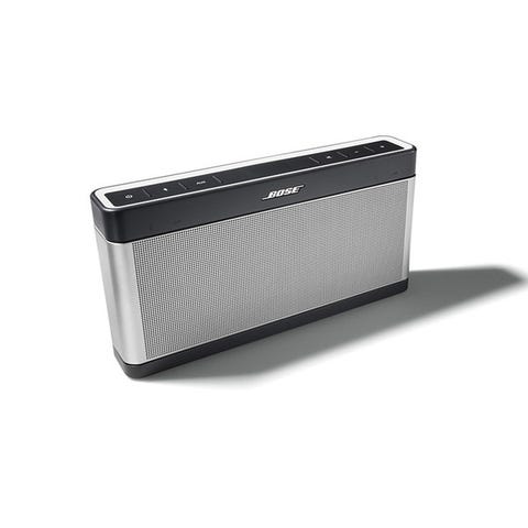 Bose SoundLink bærbar Bluetooth-høyttaler i svart. Modellen har kontrollknapper på toppen for blant annet av/på, volum og Bluetooth-tilkobling. På baksiden finnes tilkoblinger for strøm og aux-inngang (3,5 mm). Høyttaleren er egnet til trådløs avspilling av lyd fra mobil, nettbrett eller andre enheter med Bluetooth, og kan også brukes med kabel via aux-inngangen.