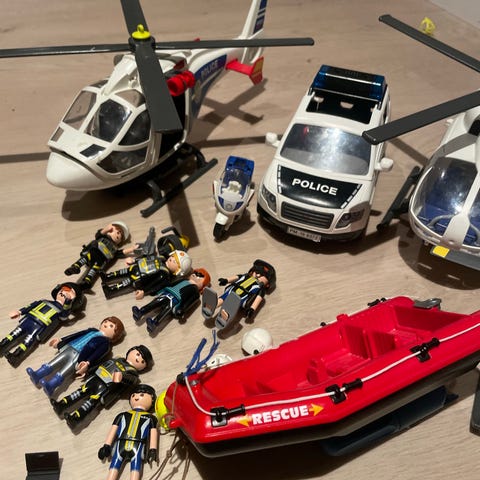 Playmobil redningssett lekesett med brannbåt, redningsbåt, bil og helikopter