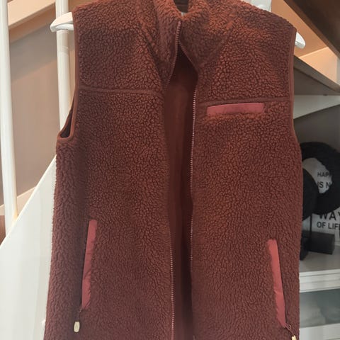 Twentyfour fleecevest for dame i størrelse 38. Vesten er brun og laget i mykt fleecemateriale. Den har glidelås i front, høy krage og lommer i sidene med glidelås. Passer som mellomlag eller ytterplagg på mildere dager. Selges kr 300. Sendes mot at kjøper bet evt frakt