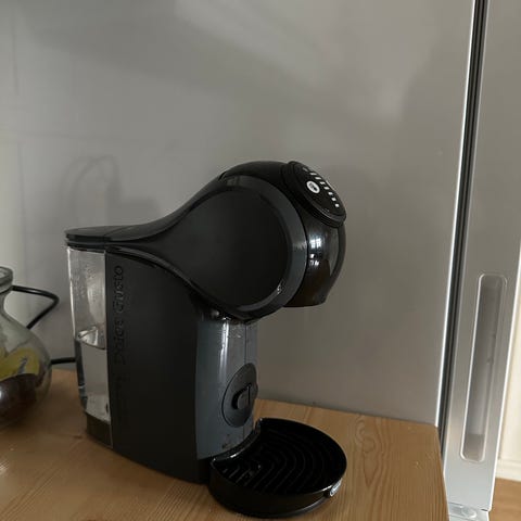 GIS BORT! Philips Senseo kaffemaskin med separat termokanne i rustfritt stål. Maskinen benytter kaffeputer i to ulike størrelser, og har knappestyring på toppen. Det følger med puteinnsatser for brygging. Egnet for tilberedning av kaffe direkte i kopp eller i medfølgende termokanne, som holder kaffen varm over tid. Passer til bruk på kjøkken eller kontor der det er behov for enkel og praktisk kaffebrygging.