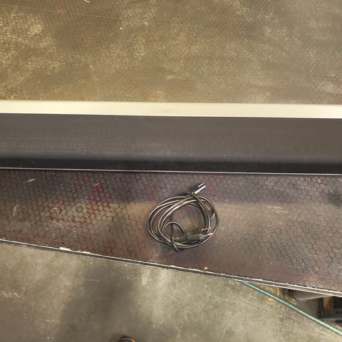 Sonos Playbar lydplanke i svart. Lydplanken er beregnet for bruk sammen med TV og kan kobles til hjemmenettverk via nettverksport på baksiden. Front og sider har stofftrekk og metallgitter rundt høyttalerne. På siden sitter knapper for volum og av/på. Kan brukes alene eller som del av et Sonos multiromsoppsett, og er egnet til både TV-lyd og musikkavspilling i stue eller tilsvarende rom.