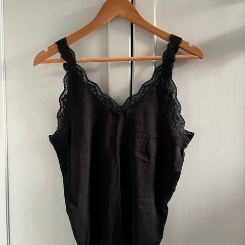 (Skrevet av AI gjennom Finn) Vero Moda singlet for dame i størrelse S. Singleten er svart og laget av bomull. Den har tynne stropper og blondedetaljer øverst foran. Passer som topp alene eller under andre plagg.