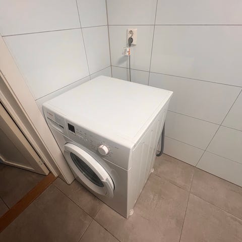 Maskinen står i 6. etasje med heis, og kjøper må selv sørge for nedtransport fra badet. Dette krever to sterke personer eller profesjonell flyttehjelp. Selger kan ikke bistå med bæring.
