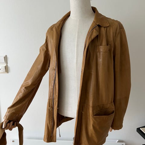 Jeg selger en klassisk skinnjakke fra klesmerke Giorgio Sappini. Jakken er laget i Spania og er 100% lammeskinn + foret på innsiden.