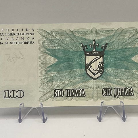 Hviterussland 100 rubler seddel fra 1992. Forsiden viser en europeisk bison, mens baksiden har dekorativt mønster og pålydende verdi 100. Seddelen egner seg som samleobjekt for mynt- og seddelsamlere med interesse for øst-europeisk valuta og historiske pengesedler.