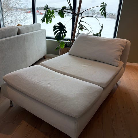 3-seter sofa med sjeselong selges. Selges for 4 500, ny pris pr. 09.02.2026 er 9 995,-