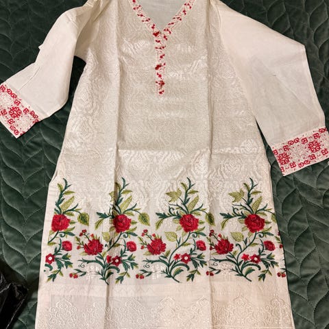 Selger indisk sett kjole bukse kjal for 300kr stk. størelse som står er xxl men vil si den er en Large og den har litt stoff inni så går Ann åpne sy om man ønsker. Har åpna en så dere kan se hvordan ser ut . Det er egnet for daglig bruk.