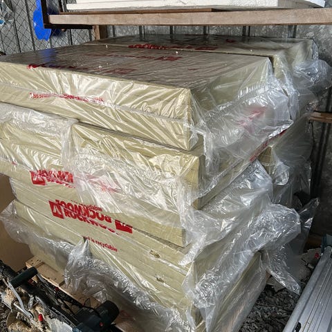 Selger 36m2 med gulvbelegg, ligger fremdeles i orginalesker. Eikelaminat, lys grå og 2 ruller med underbelegg.